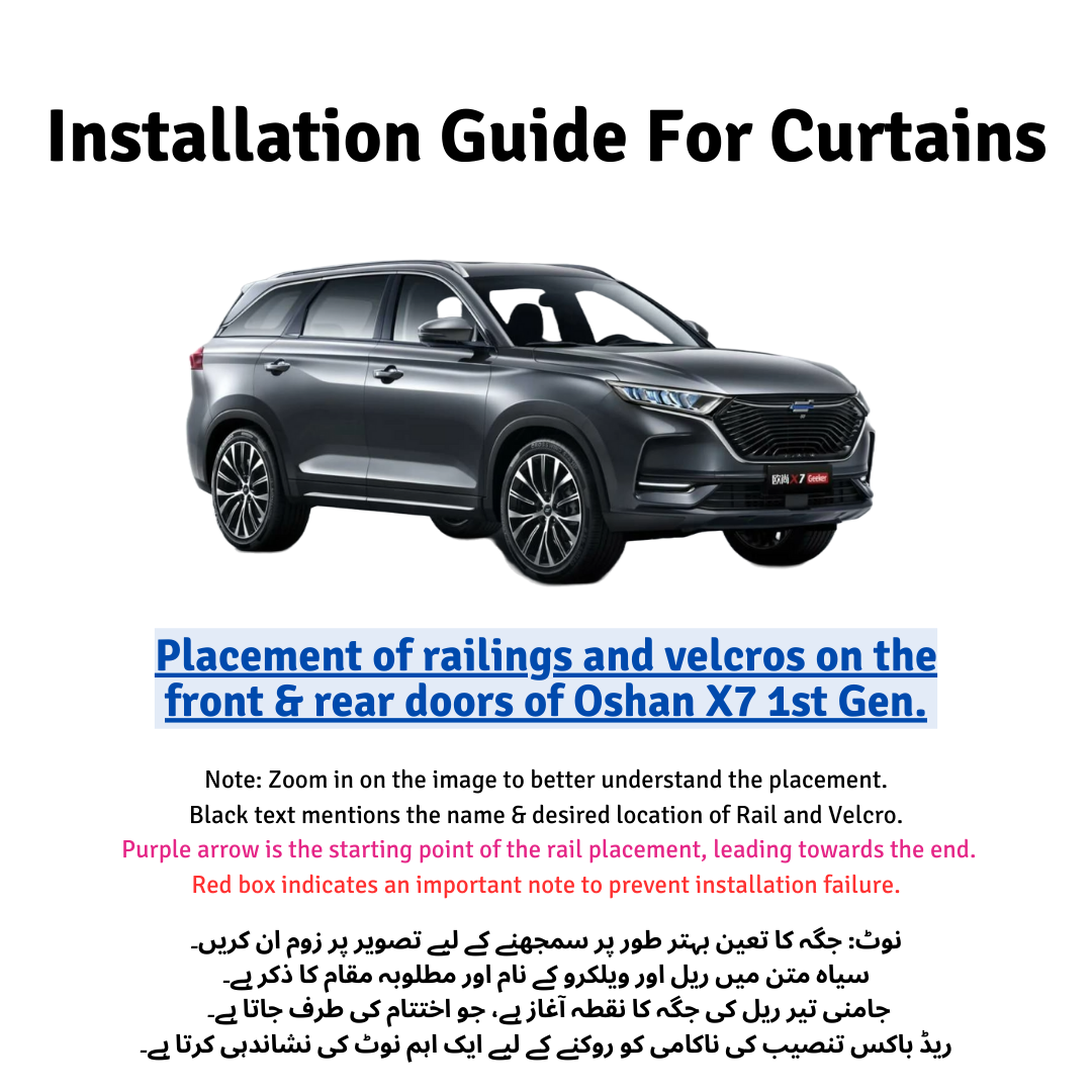 ہر گاڑی کی جینین فٹنگ میں اسکے سائز اور شیپ کے مطابق ریلنگ والے پردے