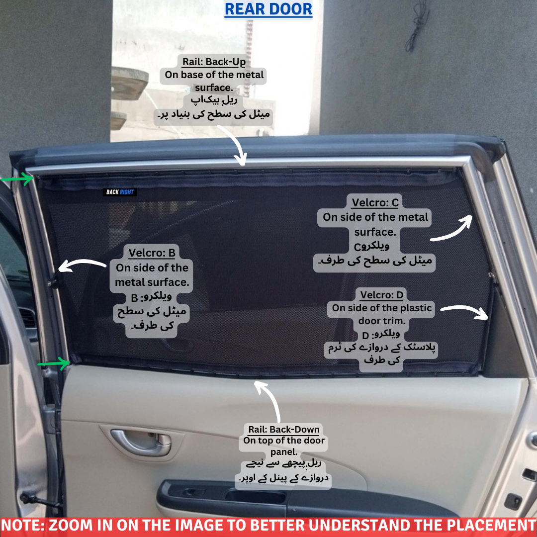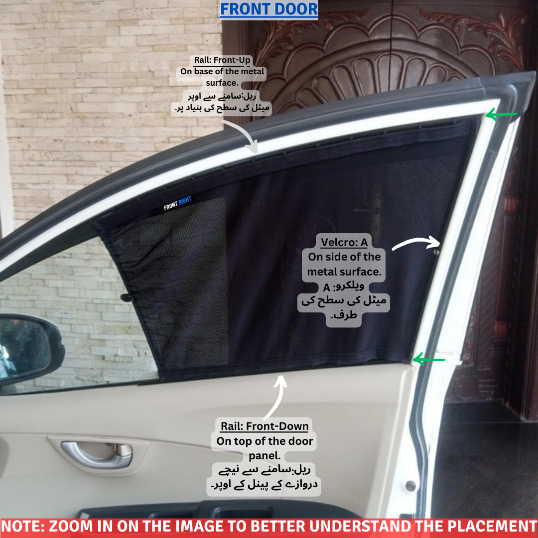ہر گاڑی کی جینین فٹنگ میں اسکے سائز اور شیپ کے مطابق ریلنگ والے پردے