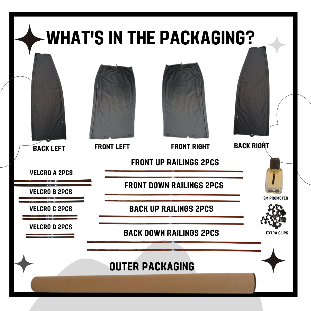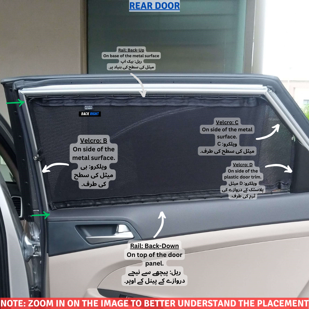 ہر گاڑی کی جینین فٹنگ میں اسکے سائز اور شیپ کے مطابق ریلنگ والے پردے