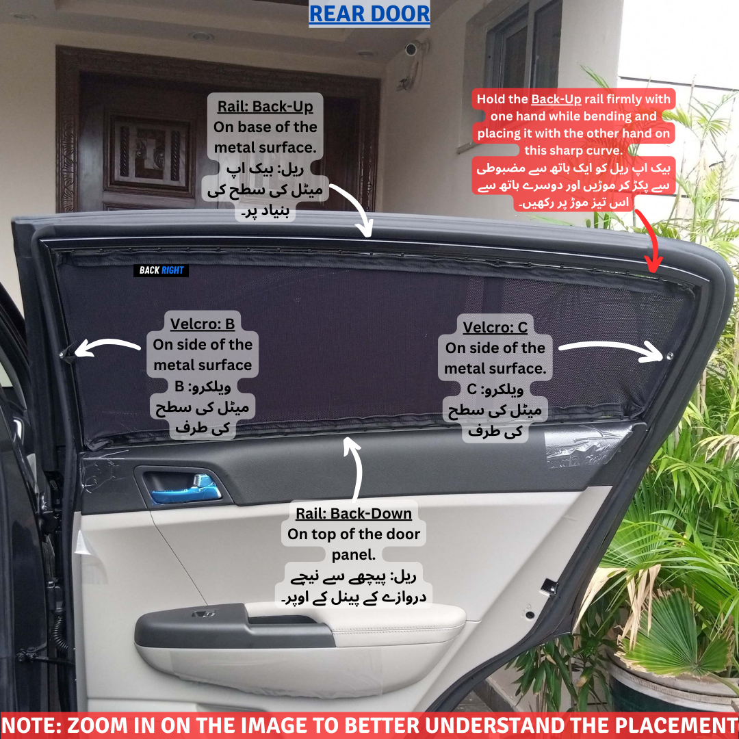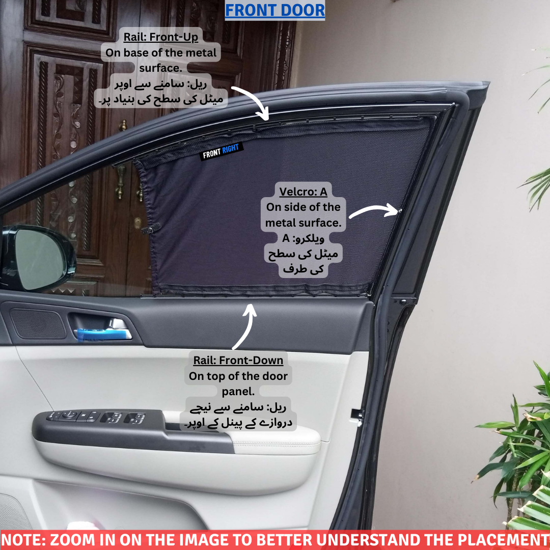 ہر گاڑی کی جینین فٹنگ میں اسکے سائز اور شیپ کے مطابق ریلنگ والے پردے