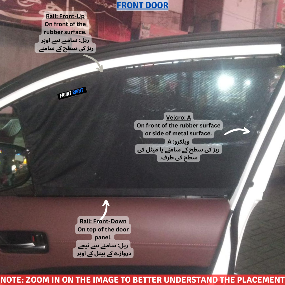 ہر گاڑی کی جینین فٹنگ میں اسکے سائز اور شیپ کے مطابق ریلنگ والے پردے